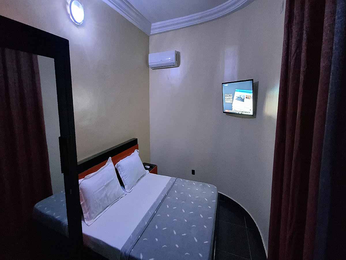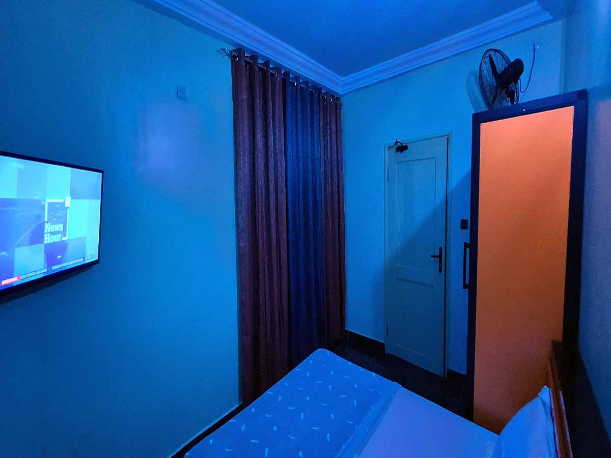 high-speed internet access, wall fan and air-conditioner. The room features a